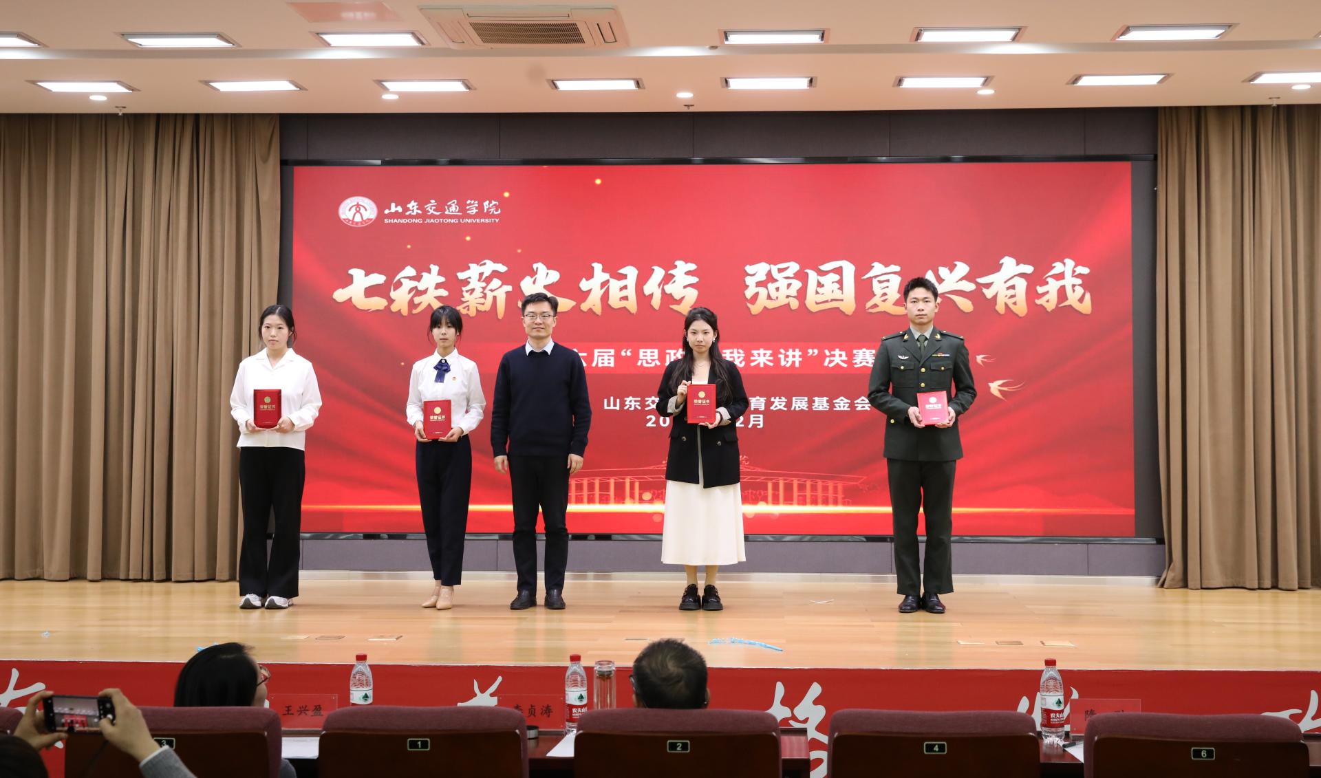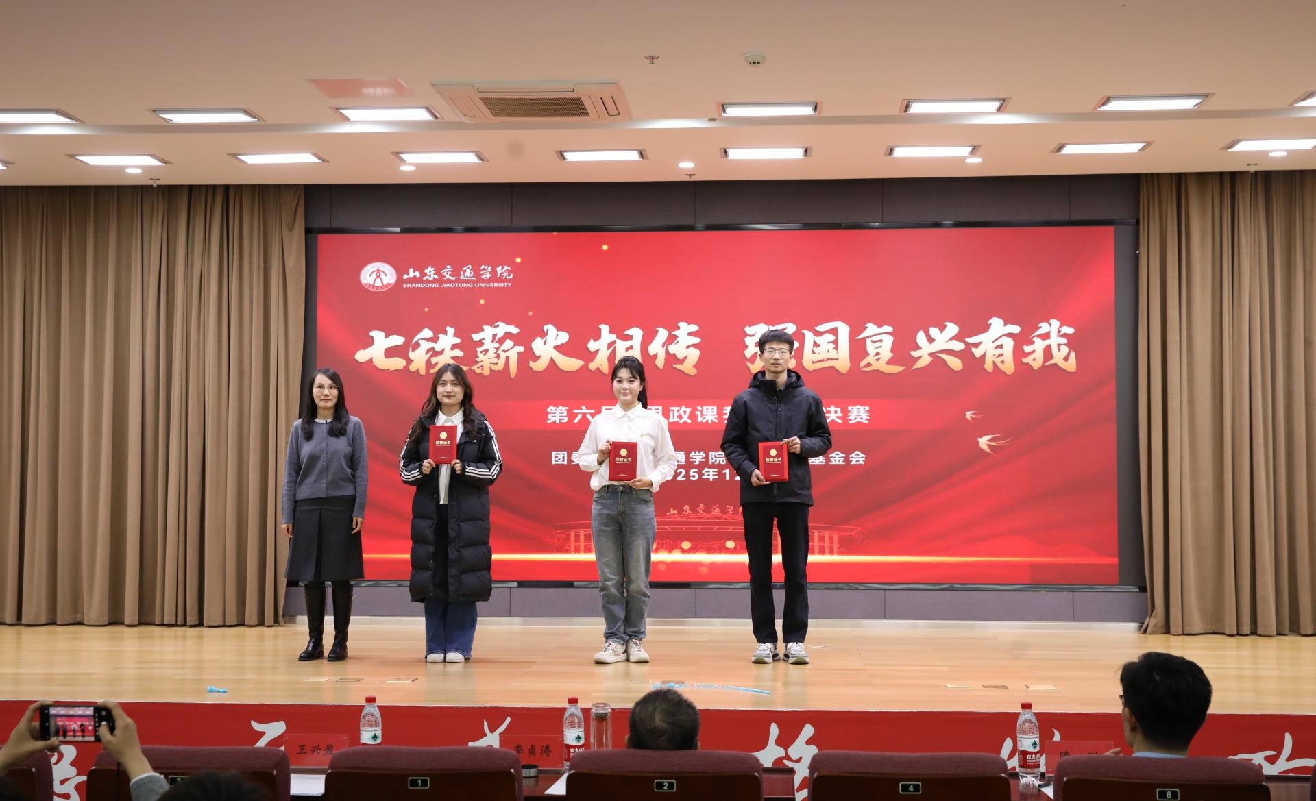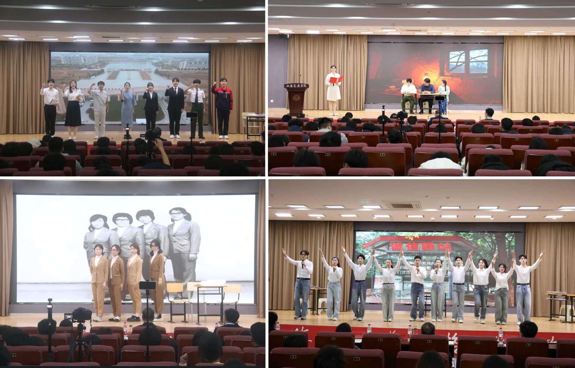活动以“七秩薪火相传,强国复兴有我”为核心主题,聚焦“人、事、交通”三大核心维度,参赛团队以“小切口”深挖校史中的红色基因与奋斗细节,用“小故事”诠释交通报国的青春志向,在讲好思政故事的过程中,进一步强化学生的爱校情怀与专业认同。决赛现场,各团队紧扣主题,创新采用情景剧、情景朗诵、主题演讲、故事讲述等多元形式,将思政理论与校史故事、交通发展实践深度融合。有的团队以校史中的老一辈教育工作者为原型,通过情景剧再现学校从建校初期到发展壮大的奋斗历程,诠释“爱校 敬业 务实 创新”的交院精神;有的团队聚焦高铁、桥梁、航海等交通领域的重大成就,结合专业学习经历,讲述青年学子投身交通强国建设的初心与规划;还有的团队通过朗诵形式,抒发对母校的深情祝福,传递新时代交院人接续奋斗的坚定信念。经评委团结合各团队的主题契合度、内容创新性、语言表达力及现场感染力等维度进行综合打分,最终评选出一等奖2项、二等奖3项、三等奖4项。
