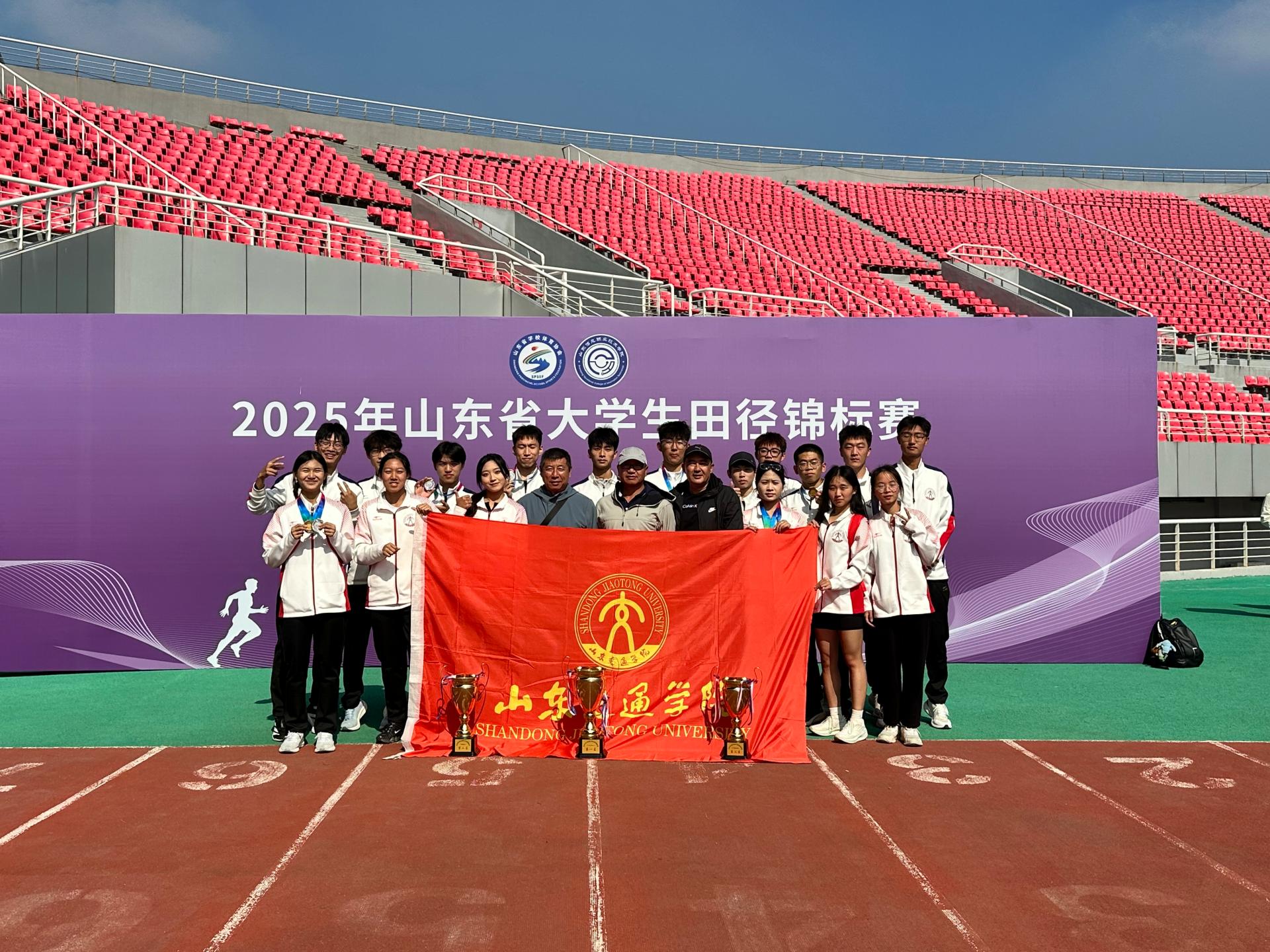 10月8日至14日,2025年山东省大学生田径锦标赛在潍坊市奥林匹克体育公园落下帷幕。我校田径运动队以16枚奖牌的优异成绩荣获甲组团体奖牌榜第1名。其中,男子田径队以4枚金牌、3枚银牌、2枚铜牌的成绩取得甲组男子团体奖牌榜第1名,女子田径队以3枚金牌、3枚银牌、1枚铜牌的成绩取得甲组女子团体奖牌榜第1名。